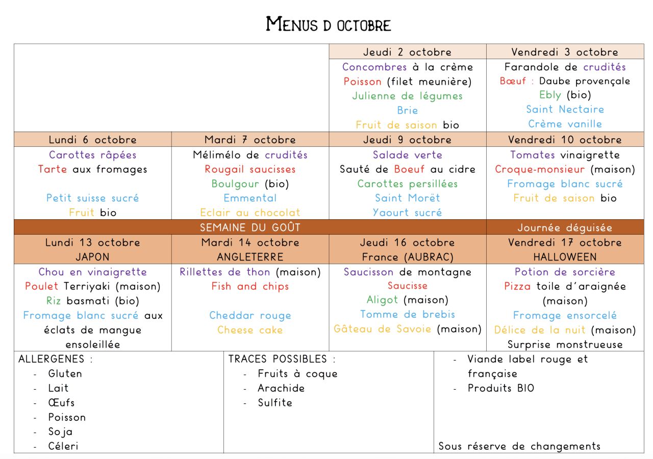 Menu d'octobre
