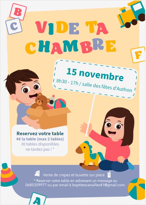 L'association des P'tites Canailles organise un vide ta chambre ce samedi 15 novembre à la salle des fêtes d'Authon.